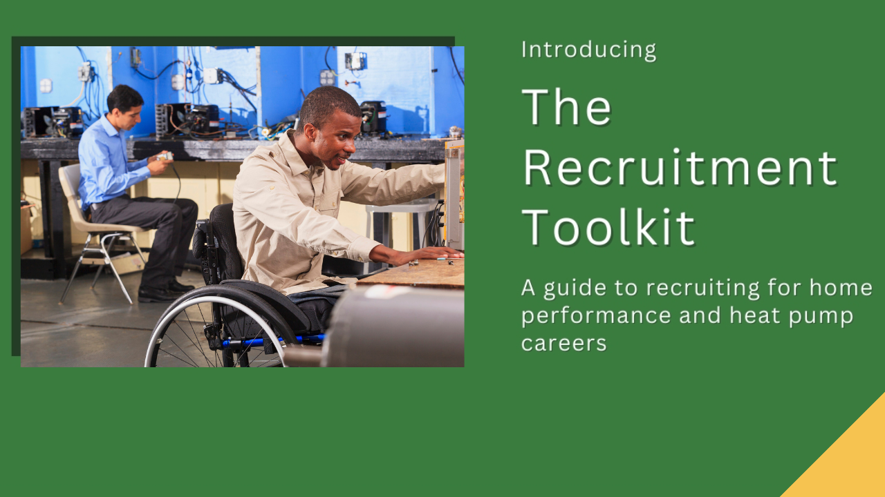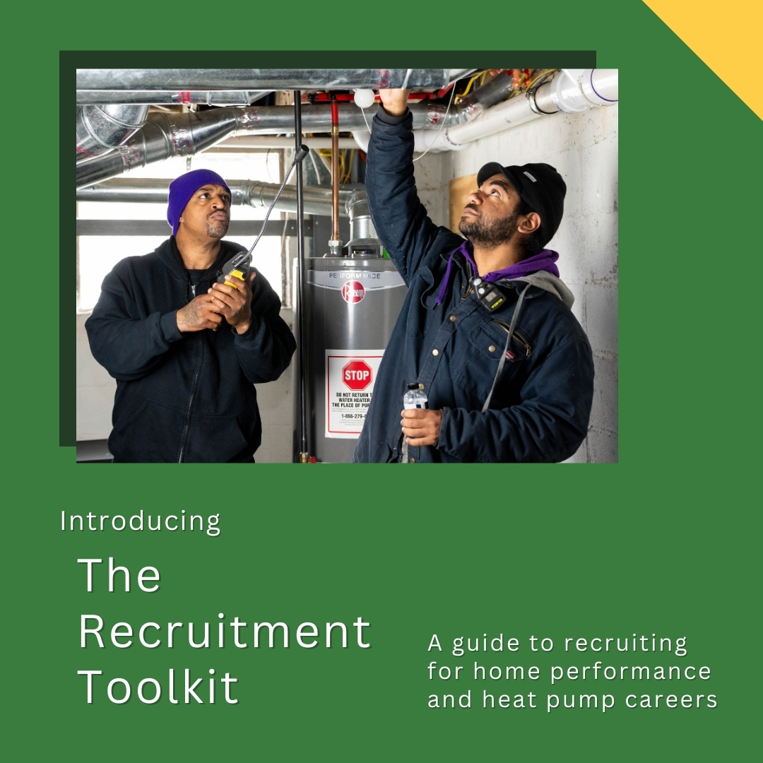 Get the employees you need! A new free Recruitment Toolkit is available for you. It is easy to use, and is filled with key messages, graphics and strategies to bring more people into companies focused on heat pump technologies and/or residential energy efficiency and home performance. This toolkit will save you time and money while increasing your successes.